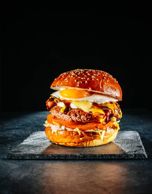 100% wołowiny/ bekon/ cheddar/ jajo/ sałata lodowa/ cebula/ pomidor malinowy/ ogór kiszony/ sos Jack Daniel’s BBQ