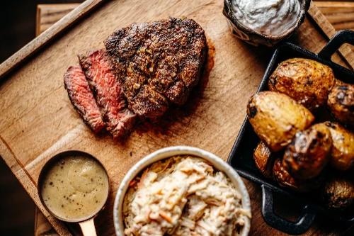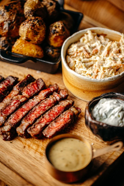 Jesteśmy grupą młodych ludzi zajaranych gastro. Z pasją tworzymy to miejsce i zrobimy wszystko, aby ta wizyta była wyjątkowa. Nasza karta jest bardzo obszerna — wybacz, ale kochamy gotować i ciągle wymyślamy coś nowego. Dzięki temu każdy znajdzie coś dla siebie. Sami selekcjonujemy warzywa i owoce. Jeździmy na targ i do lokalnych rolników, aby wybrać najlepsze produkty. Wszystkie świeże mięsa wybieramy lokalnie, omijając wielkie koncerny i hurtownie — tak, abyś zawsze cieszył/a się wyjątkową jakością. Wszystkie dania, sosy i chutney’e tworzymy od podstaw, z zachowaniem sztuki kulinarnej! Nie uznajemy półśrodków — nawet przy skali naszego lokalu (400 miejsc). Steaki grillujemy u nas na żywym ogniu. W ofercie mamy tylko niemrożone mięso z różnych zakątków świata, abyś sam/a wybrał/a, w którą kulinarną podróż dziś ruszasz. Jesteśmy tutaj po to, aby Cię uszczęśliwiać — to nasz nadrzędny cel. Dlatego zmieniaj w daniach, co tylko chcesz, abyś był/a w pełni usatysfakcjonowany/a. Enjoy!